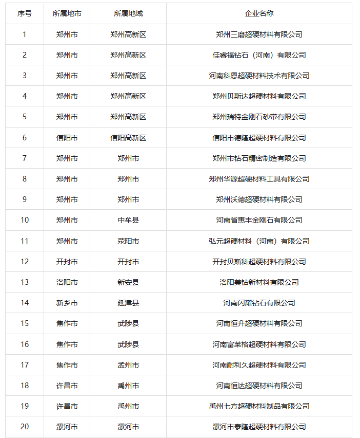 近日,河南省科学技术厅公布了2025年河南省*批拟认定高新技术企业名单,27家超硬材料企业入围。